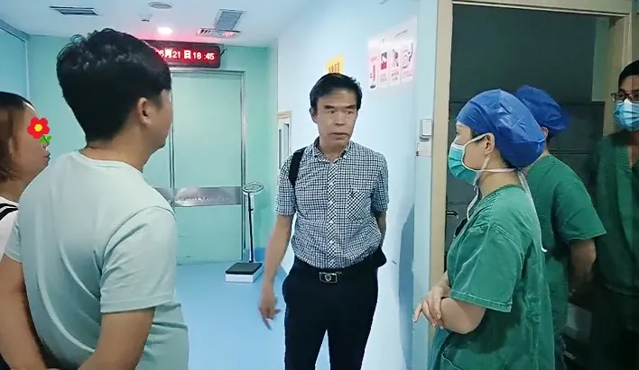 手术成功完成后,娄卫华教授及手术团队在手术室外与家长沟通
