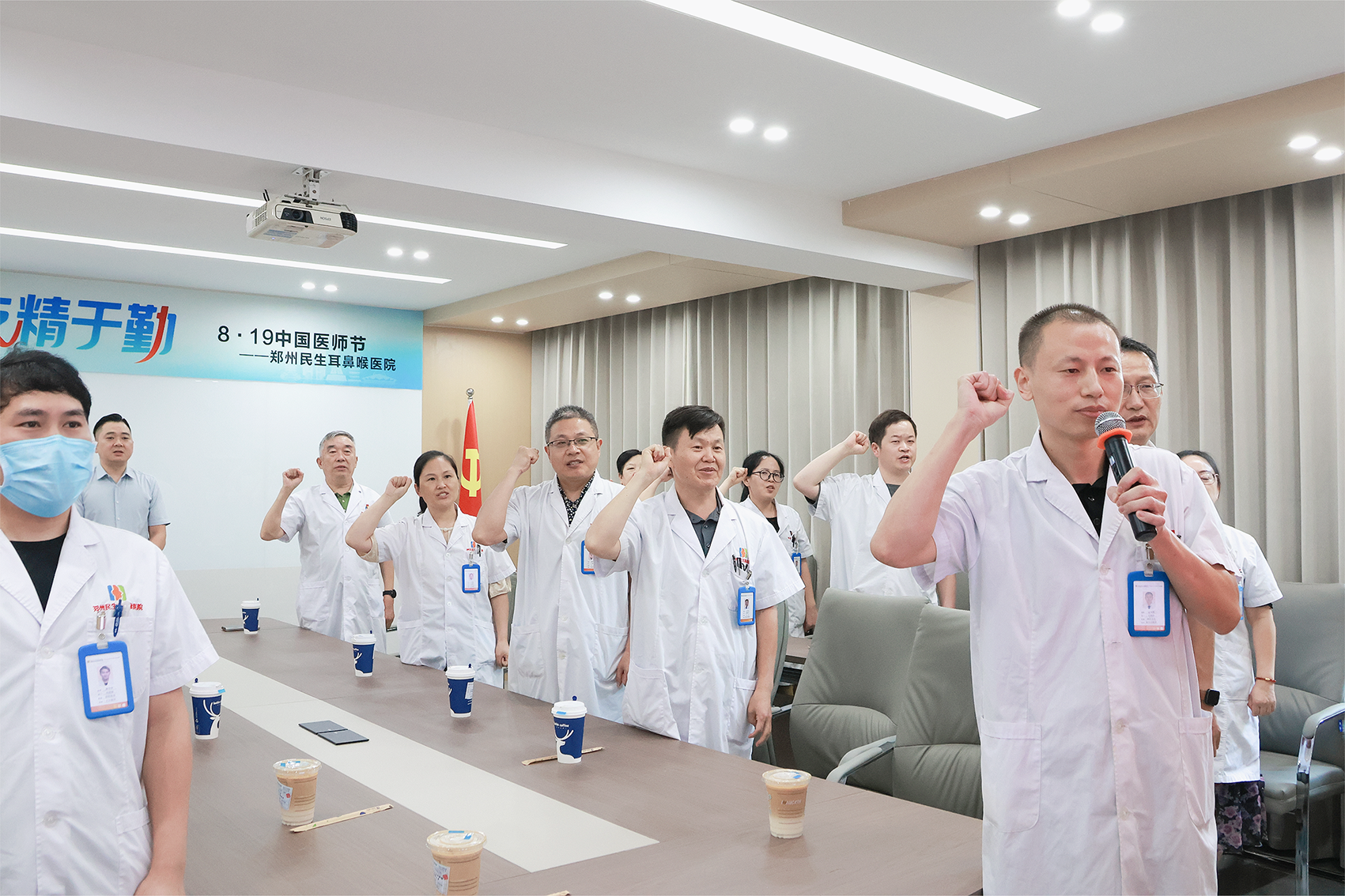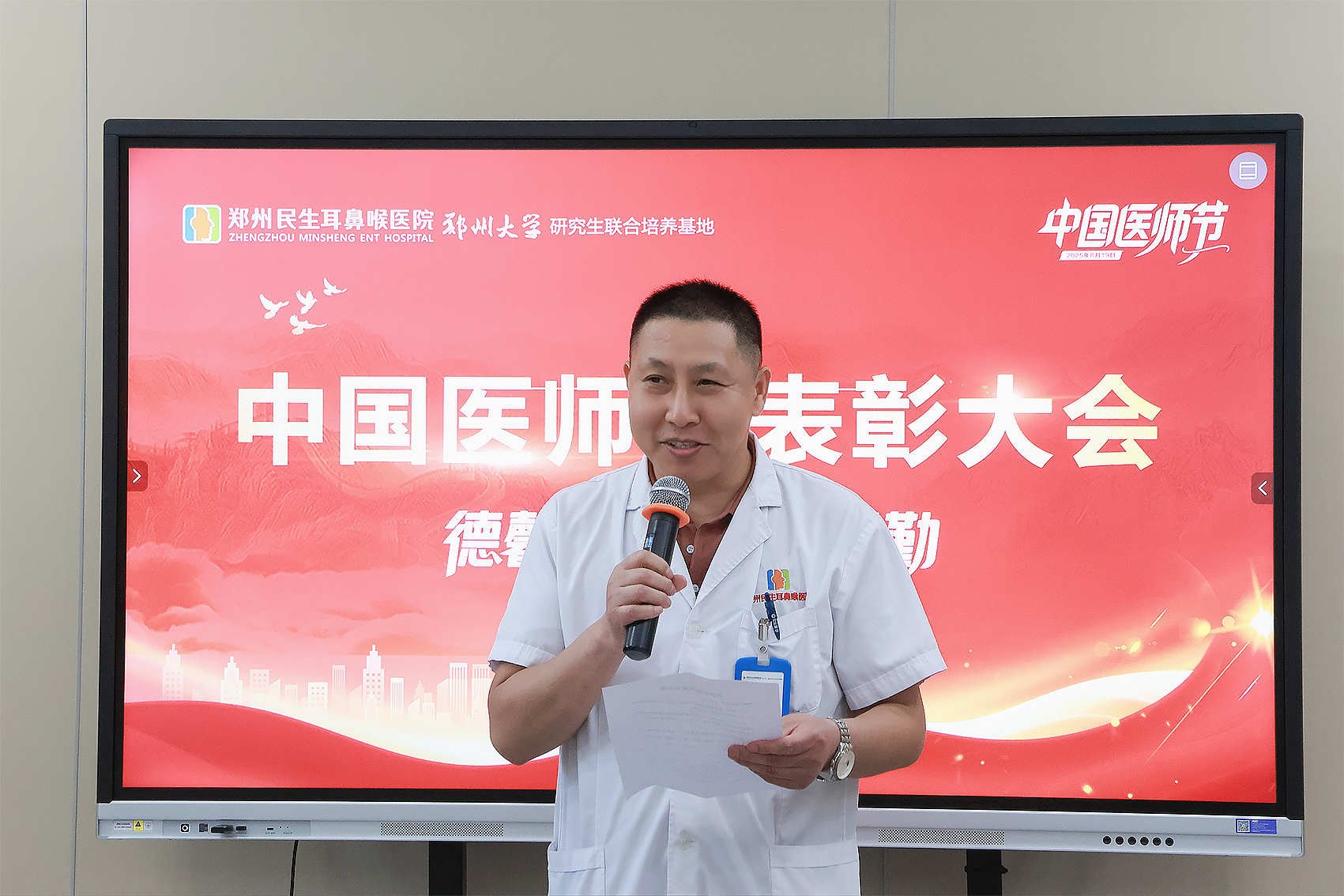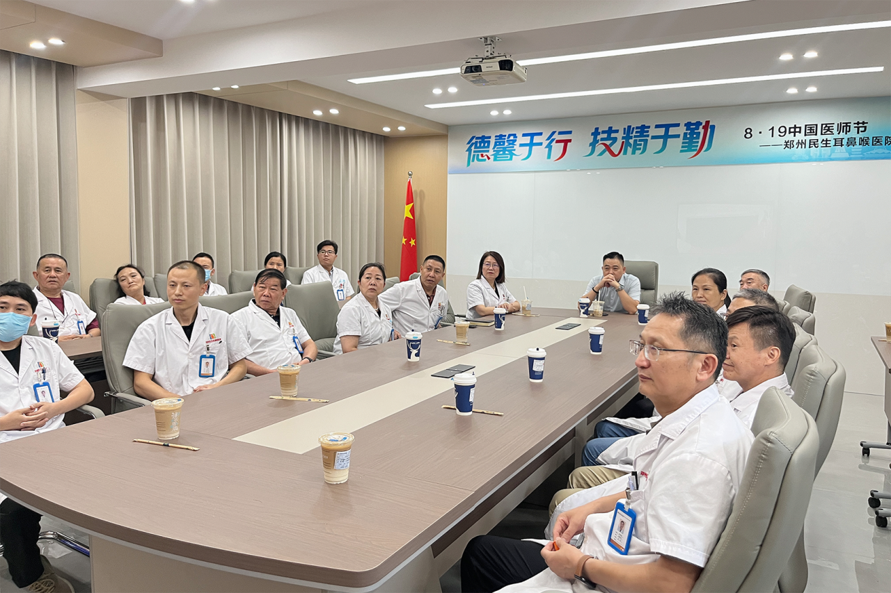 在第八个中国医师节到来之际,为进一步弘扬“敬佑生命、救死扶伤、甘于奉献、大爱无疆”的崇高精神,8月15日下午,郑州民生耳鼻喉医院围绕“德馨于行,技精于勤”主题,在院多功能会议室隆重举行庆祝活动。院长禹爽、医疗院长钱江平、业务院长王高宏及全体医师代表齐聚一堂,共庆属于医师的节日。活动由院长助理石子璐主持。