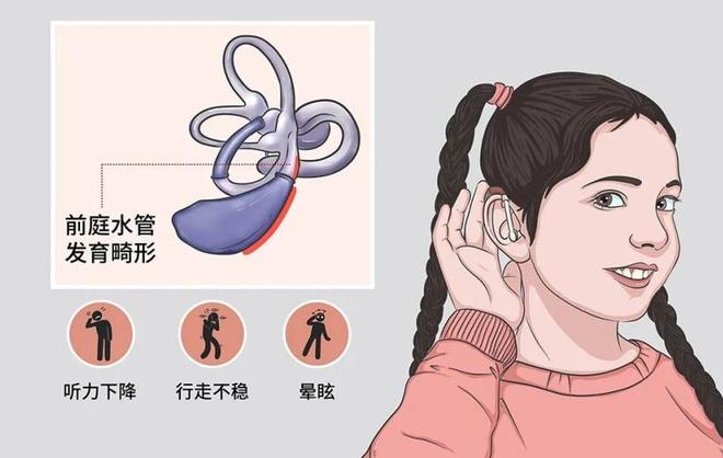 大前庭水管综合征。这意味着她的内耳发育存在异常,听力可能波动、甚至逐渐下降。